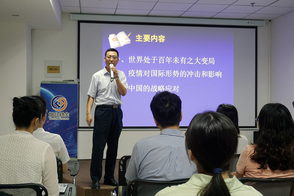 為助力集團(tuán)干部職工拓展視野,增長知識,進(jìn)一步認(rèn)清當(dāng)前國內(nèi)國際形勢,擔(dān)當(dāng)使命,自覺應(yīng)對風(fēng)險挑戰(zhàn),7月23日上午,集團(tuán)舉辦了第三期“財金大講堂”,開展國情黨情和形勢政策教育,邀請到中共煙臺市委黨校哲學(xué)教研室副主任、副教授劉中興帶來《當(dāng)前國際形勢——疫情沖擊與戰(zhàn)略應(yīng)對》專題講座。