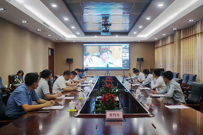 6月9日上午,萊陽(yáng)市政府與煙臺(tái)財(cái)金集團(tuán)就共同推動(dòng)萊陽(yáng)綠色食品產(chǎn)業(yè)高質(zhì)量發(fā)展正式簽署戰(zhàn)略合作框架協(xié)議,財(cái)金集團(tuán)總經(jīng)理李輝帶領(lǐng)集團(tuán)相關(guān)部門(mén)負(fù)責(zé)人出席簽約儀式。中共萊陽(yáng)市委常委、組織部部長(zhǎng)遲義江,財(cái)金集團(tuán)總經(jīng)理助理吳軍紀(jì)分別代表雙方完成簽約,煙臺(tái)市人大常委會(huì)副主任、煙臺(tái)市食品產(chǎn)業(yè)鏈鏈長(zhǎng)李勝剛,中國(guó)綠色食品協(xié)會(huì)執(zhí)行副會(huì)長(zhǎng)王運(yùn)浩以遠(yuǎn)程視頻連線的方式見(jiàn)證了雙方簽約。