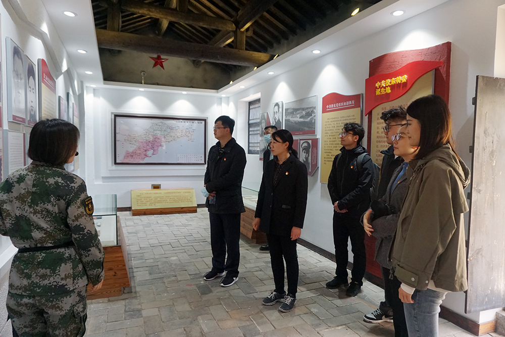 在昆崳山革命紀(jì)念館門前,全體黨員排列整齊,莊嚴(yán)肅立,在領(lǐng)誓人的帶領(lǐng)下,大家一起重溫了入黨誓詞。隨后,跟隨昆崳山紅色教育基地講解員,一同進(jìn)入紀(jì)念館參觀學(xué)習(xí)。透過陳列著革命老物件和珍貴照片,大家了解到中共膠東特委誕生,膠東人民革命武裝發(fā)祥,膠東人民兵工發(fā)源,昆崳山駐軍相關(guān)戰(zhàn)斗和建設(shè)的歷程,看到了以于得水為首一批共產(chǎn)黨人領(lǐng)導(dǎo)了的“一一?四”武裝暴動(dòng),開啟了昆崳山游擊戰(zhàn),山東人民抗日救國、膠東革命武裝等革命斗爭。大家認(rèn)真聆聽講解,無不為英雄們偉大的革命精神所感動(dòng)。