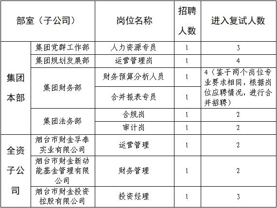 按照《2020年煙臺財金集團面向“雙一流”和全球TOP200高校畢業(yè)生公開招聘簡章》工作安排,公司分別于9月9日、9月18日組織了兩個批次的初試,根據(jù)初試總體情況,經(jīng)研究決定,擬對部分崗位組織復(fù)試,現(xiàn)將有關(guān)事項公告如下: